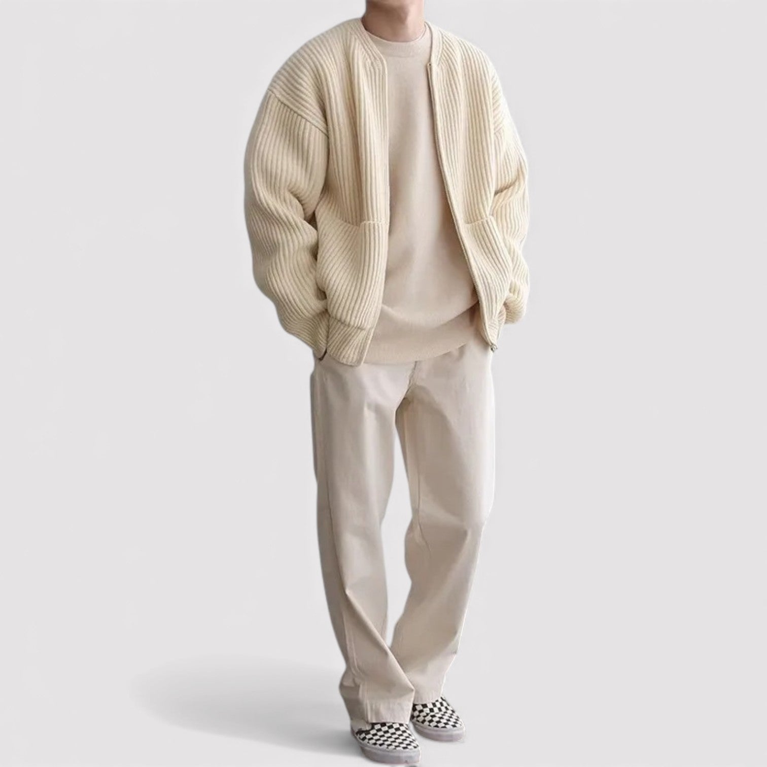このプレミアムジップニットセーターに身を包めば、瞬時に洗練された印象に。リラックス感がありながらも上品で、努力せずともきちんと見える静かな自信をもたらします。