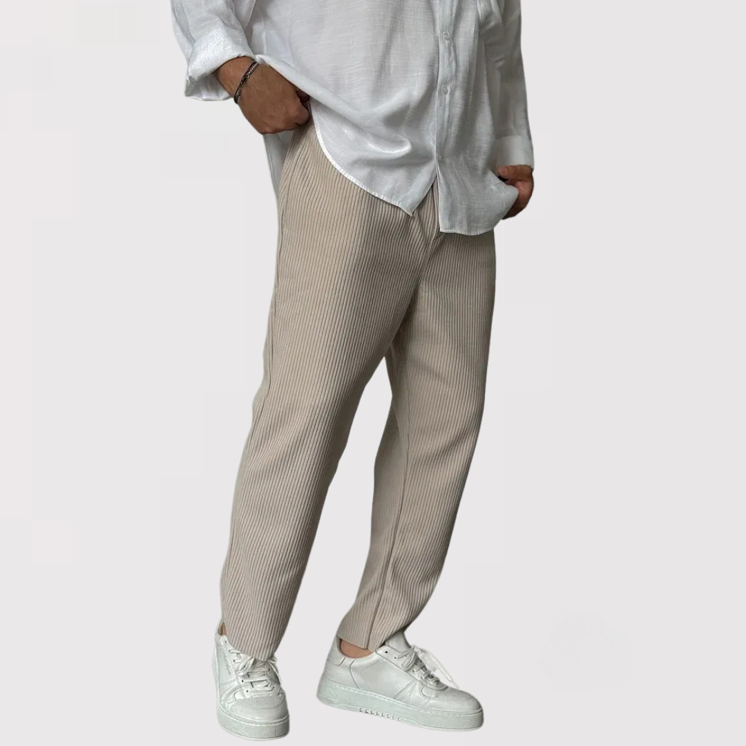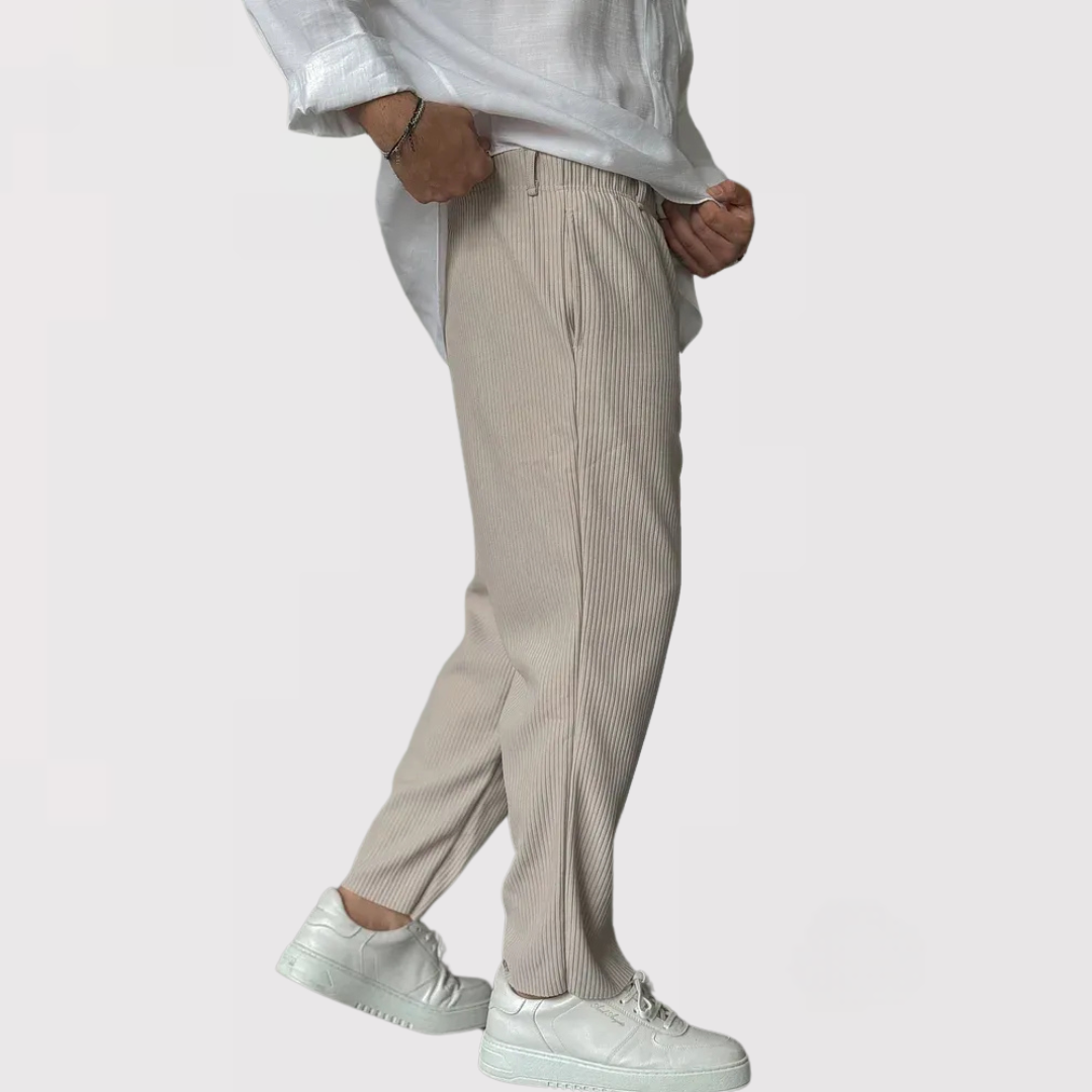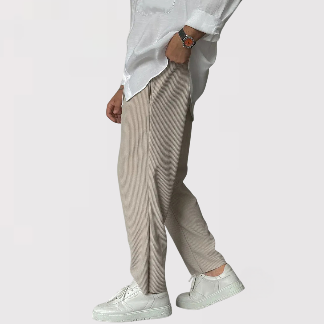 エレガンスと快適さの両方を求める現代の男性のために仕立てられた一本。上質なストレッチ素材を使用し、洗練されたシルエットと一日中続く快適さを両立。朝のミーティングから週末の散歩まで、あらゆるシーンで活躍し、思わず褒められる万能パンツです。