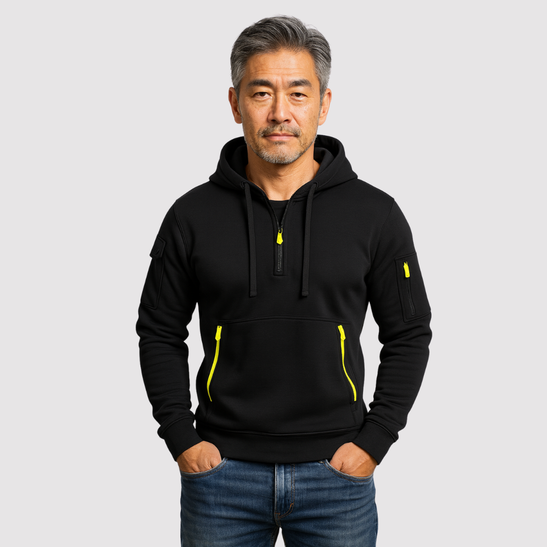 モダンで洗練されたこのフーディーは、落ち着いた自信と快適さを日常のワードローブにもたらします。すっきりとした構築的なシルエットは、大人の体型を引き立てながら、あらゆる場面で快適さを保証します。