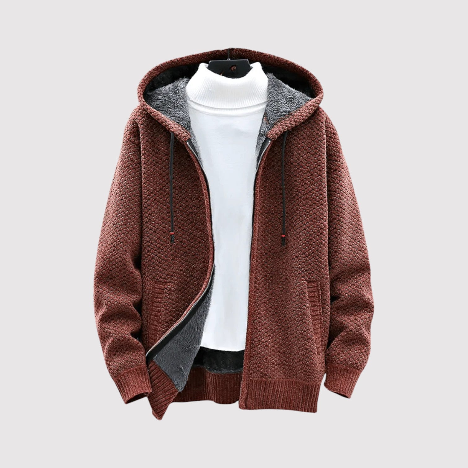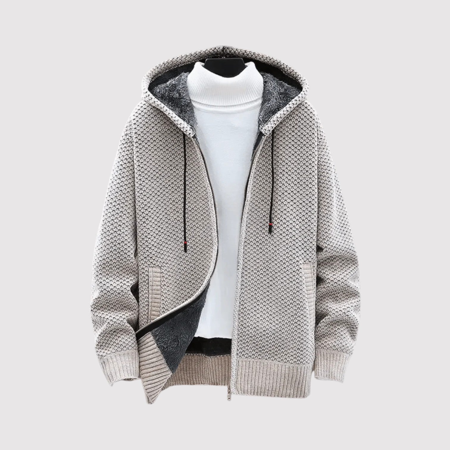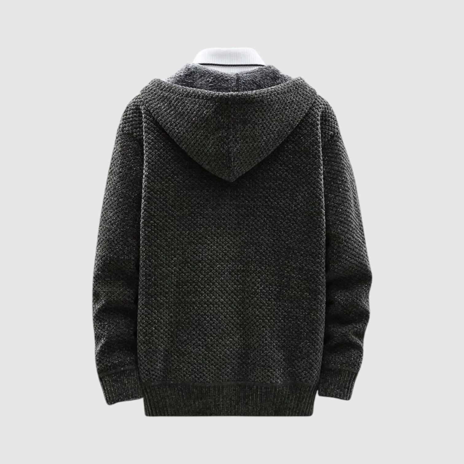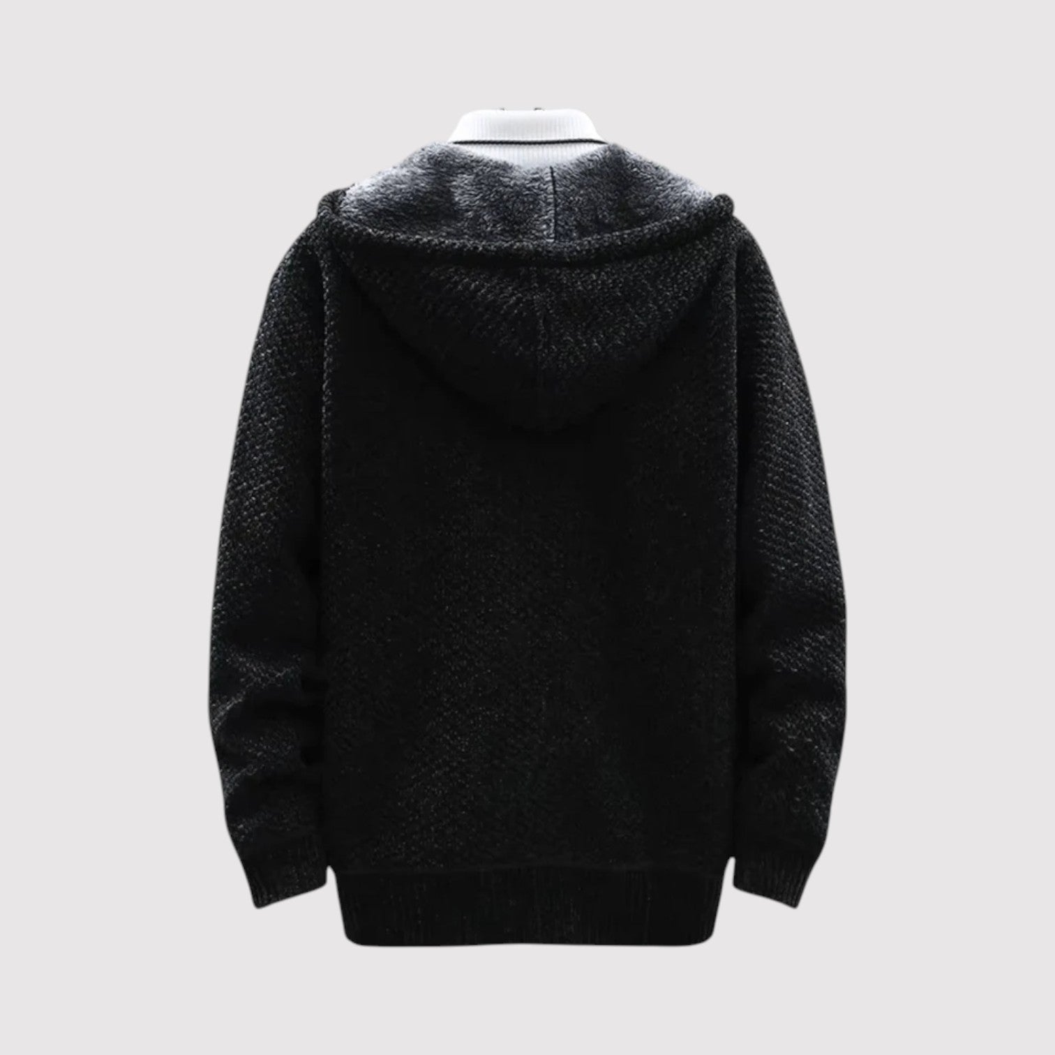 自信を引き立てる上質な快適さに包まれてください。 このプレミアムニットフーディーは、暖かさ・構築的なシルエット・洗練された印象を兼ね備え、快適さを犠牲にしない大人の男性に最適です。