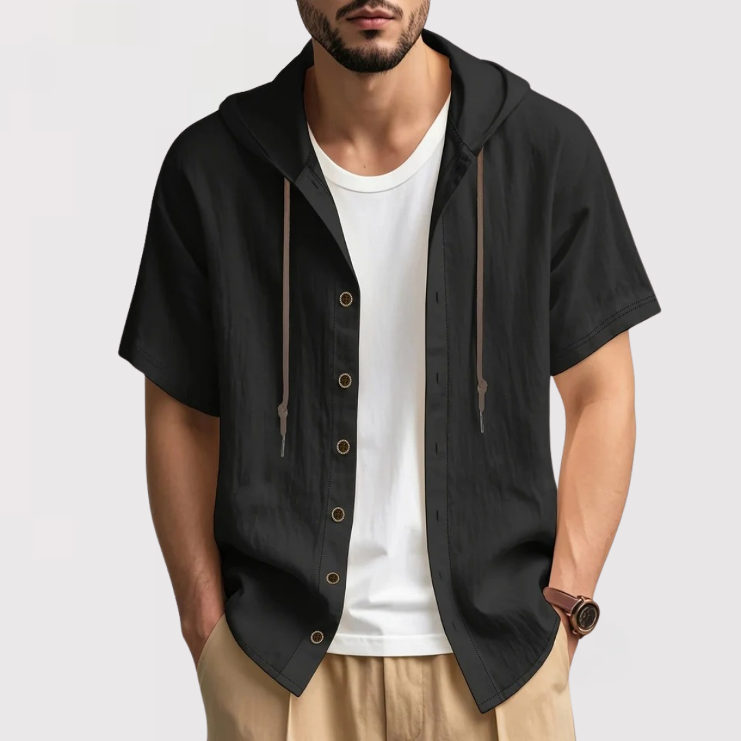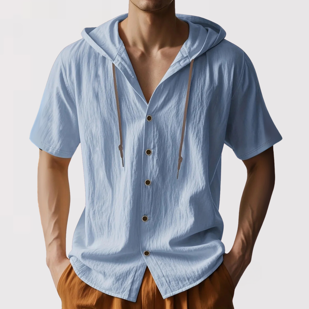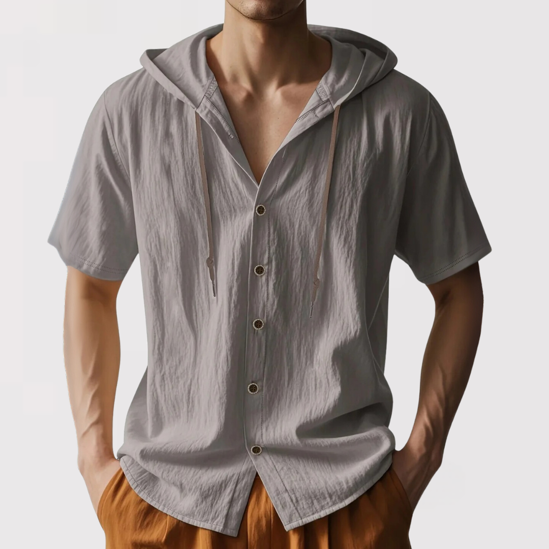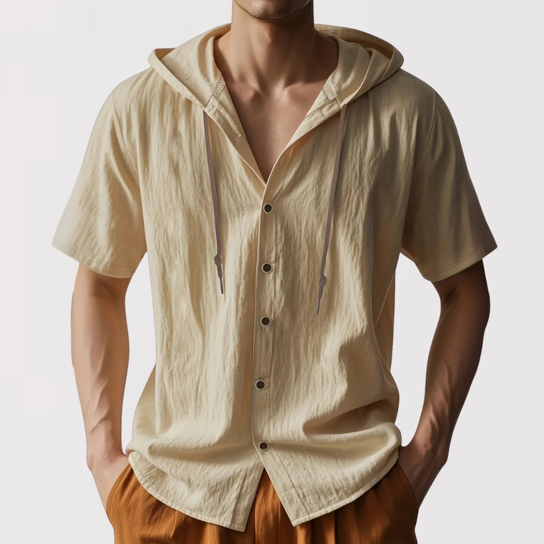 カジュアルリネンフードシャツ – 軽やかさとリラックス感を兼ね備えた一枚