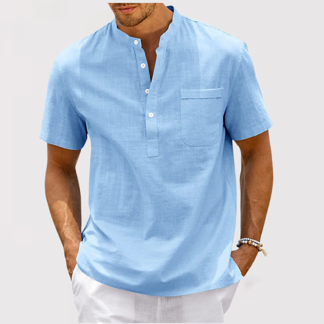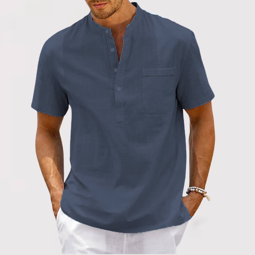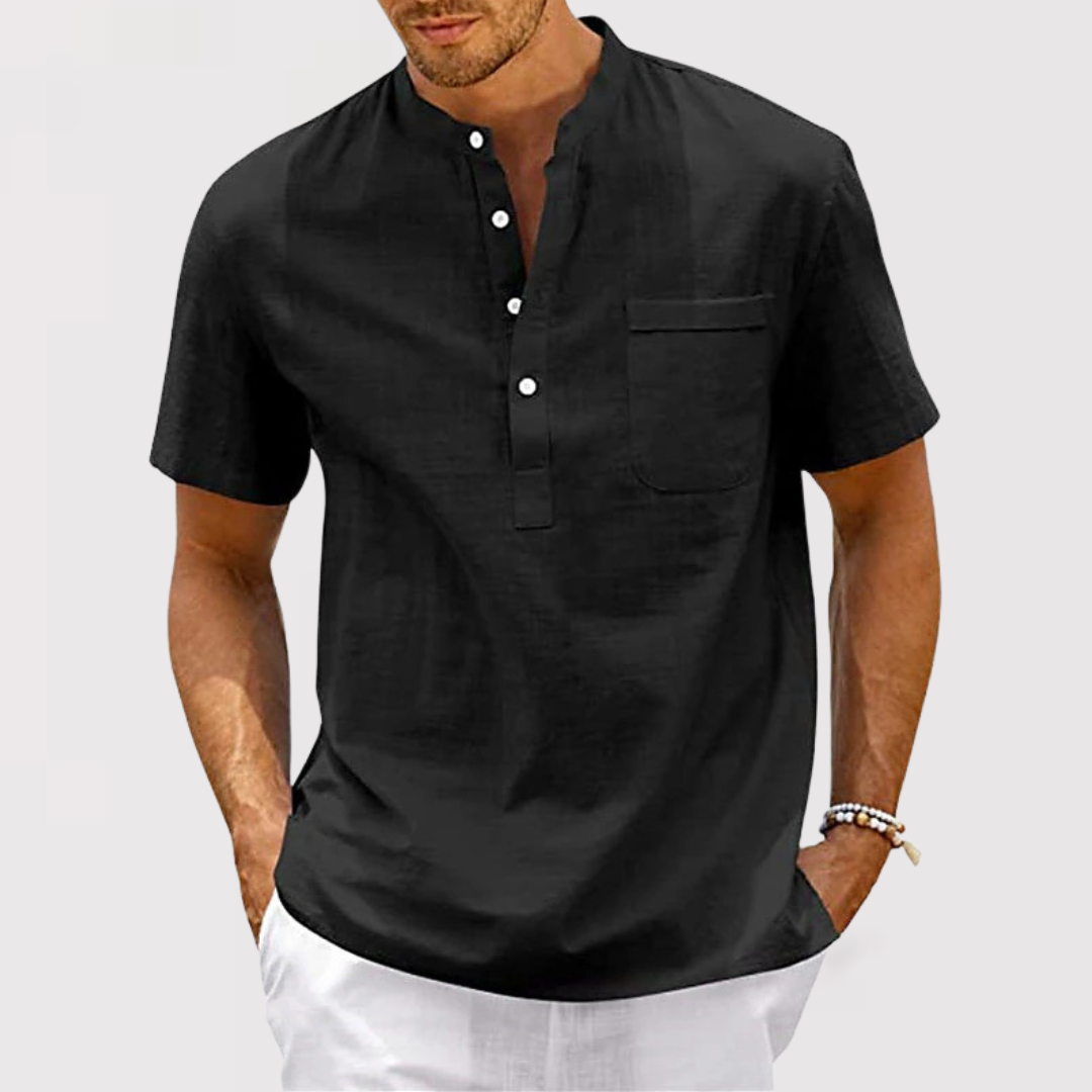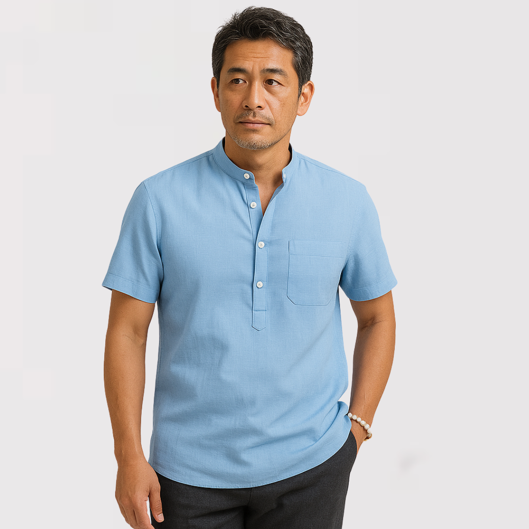 機能性と洗練さを兼ね備えた、フロントポケット付きのヘンリーネックシャツ。