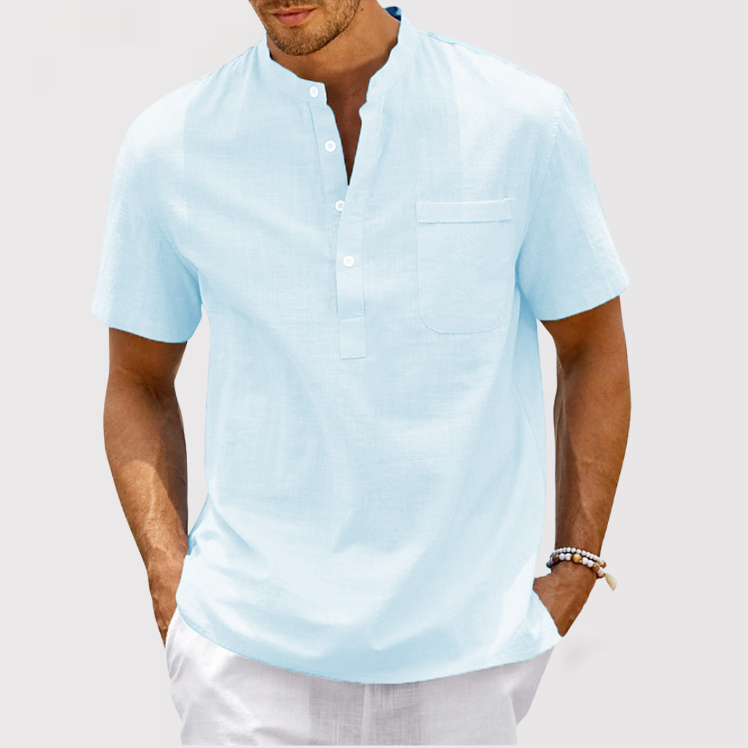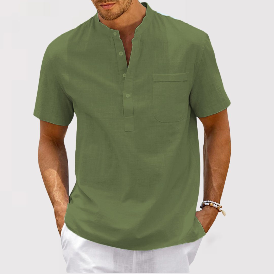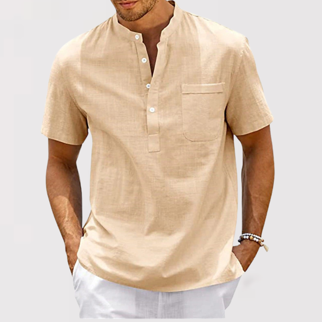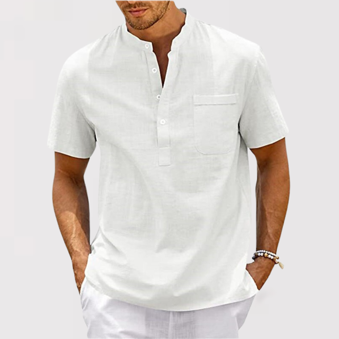 機能性と洗練さを兼ね備えた、フロントポケット付きのヘンリーネックシャツ。
