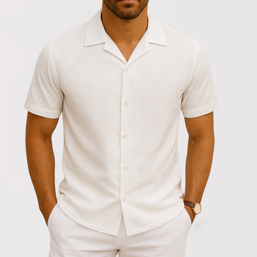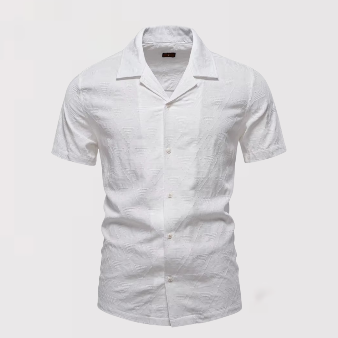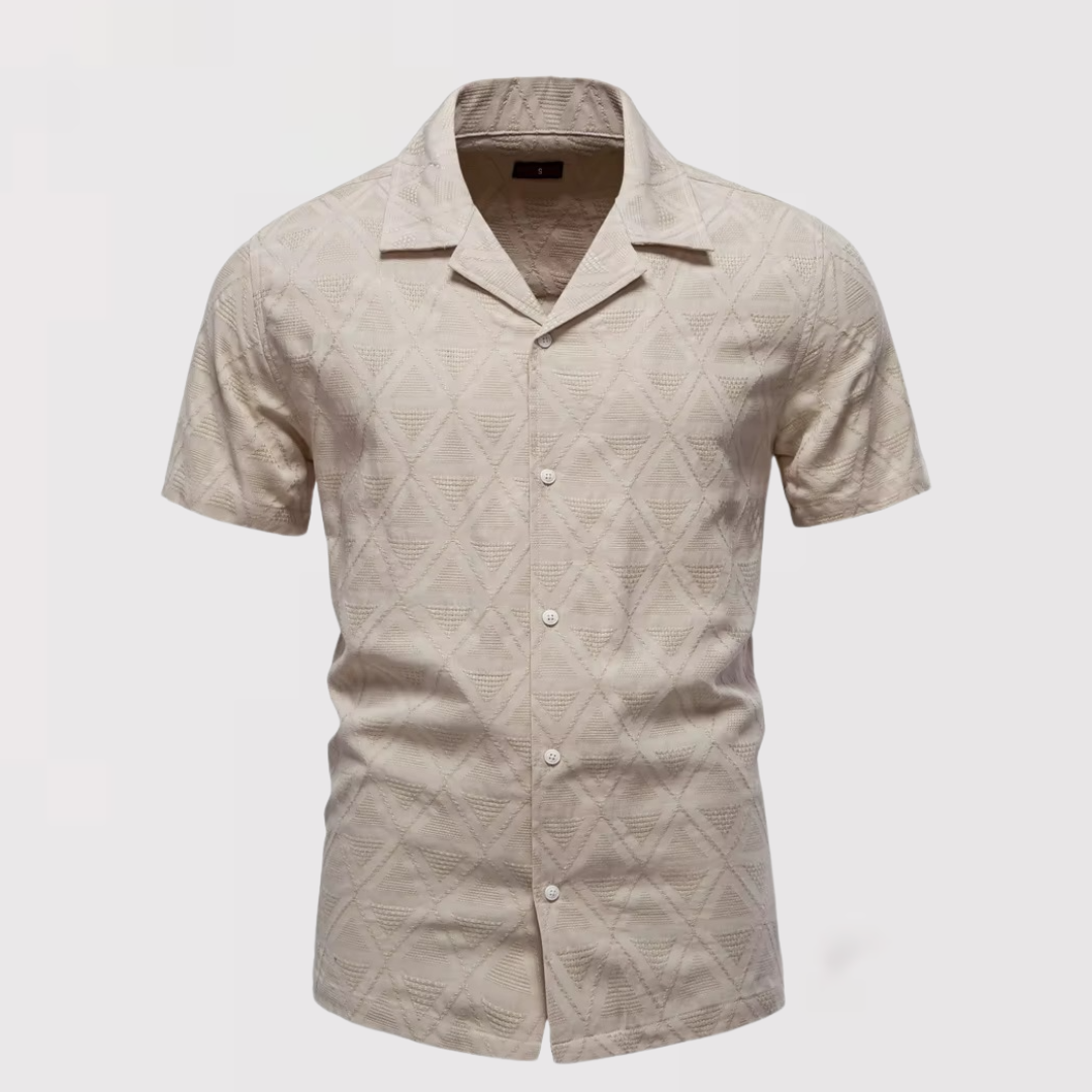 繊細な幾何学模様が施された通気性の高いコットン素材で仕立てた、夏にぴったりの一着。リヴィエラシャツは、洗練されたスタイルと快適さを兼ね備えています。海辺の散歩、テラスでのランチ、夕方のカクテルにも最適な、大人のためのサマーシャツです。
