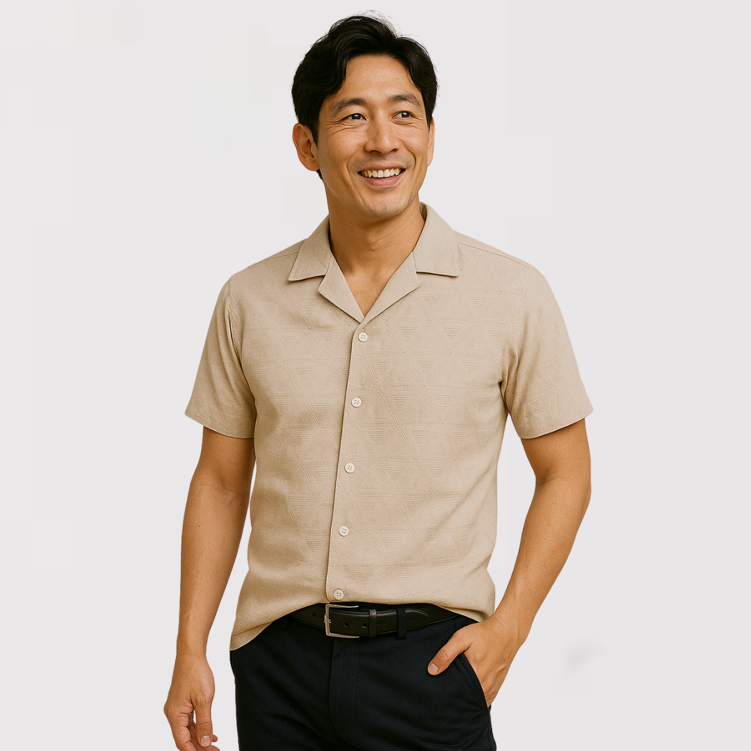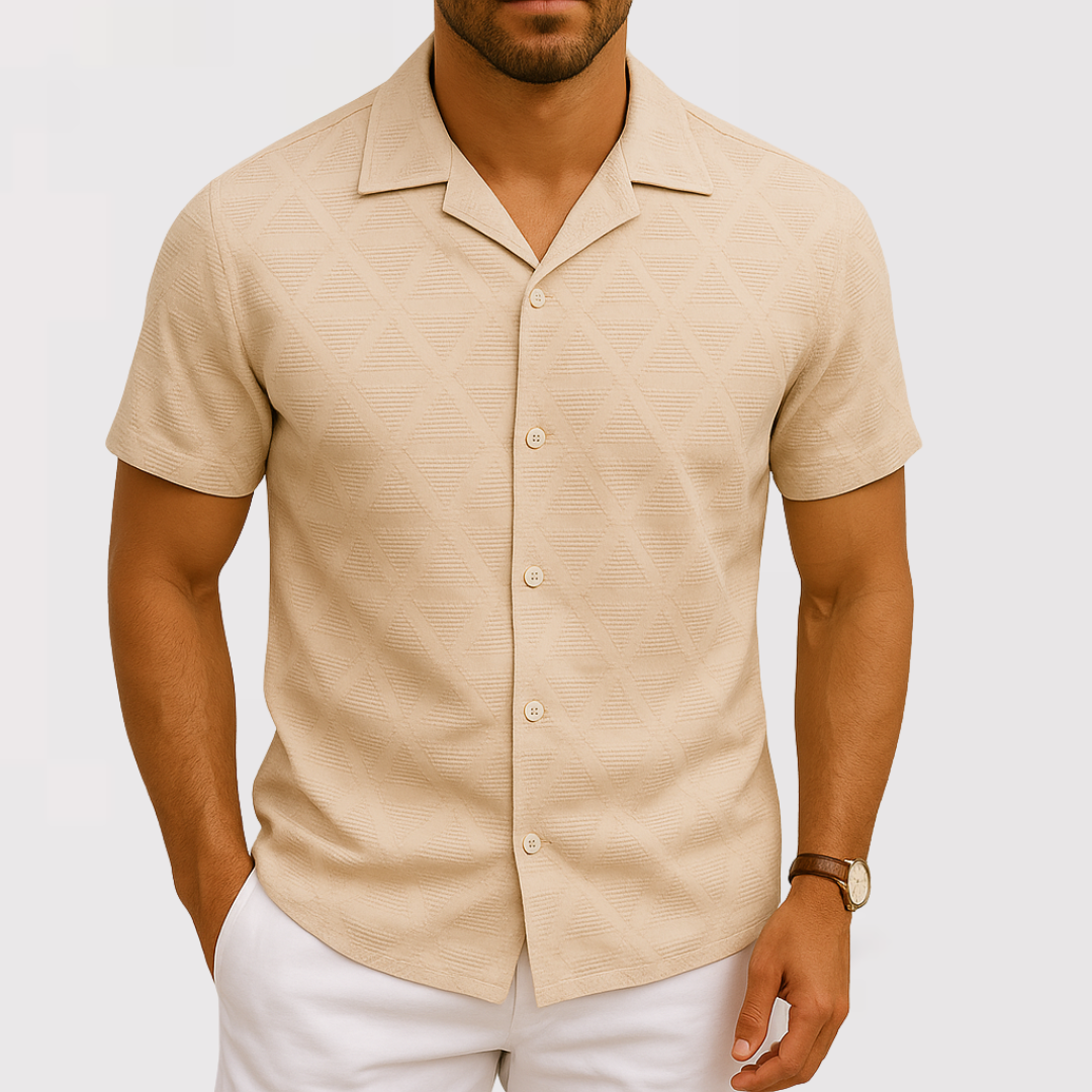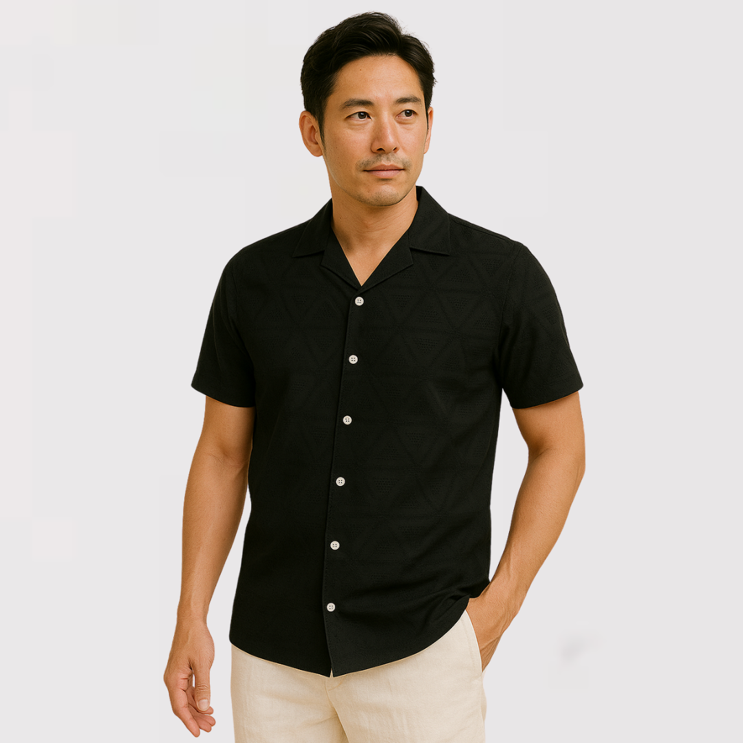 繊細な幾何学模様が施された通気性の高いコットン素材で仕立てた、夏にぴったりの一着。リヴィエラシャツは、洗練されたスタイルと快適さを兼ね備えています。海辺の散歩、テラスでのランチ、夕方のカクテルにも最適な、大人のためのサマーシャツです。