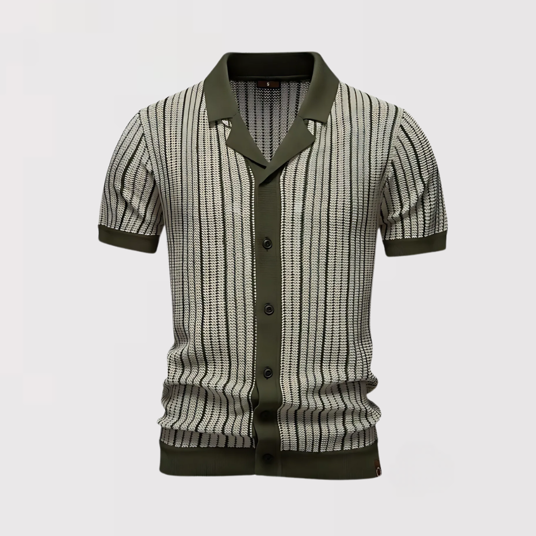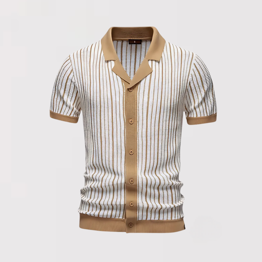 このストライプニットポロは、柔らか伸縮性ある素材快適着心地。すっきりしたシルエットクラシックデザインで、日常お出かけ最適です。