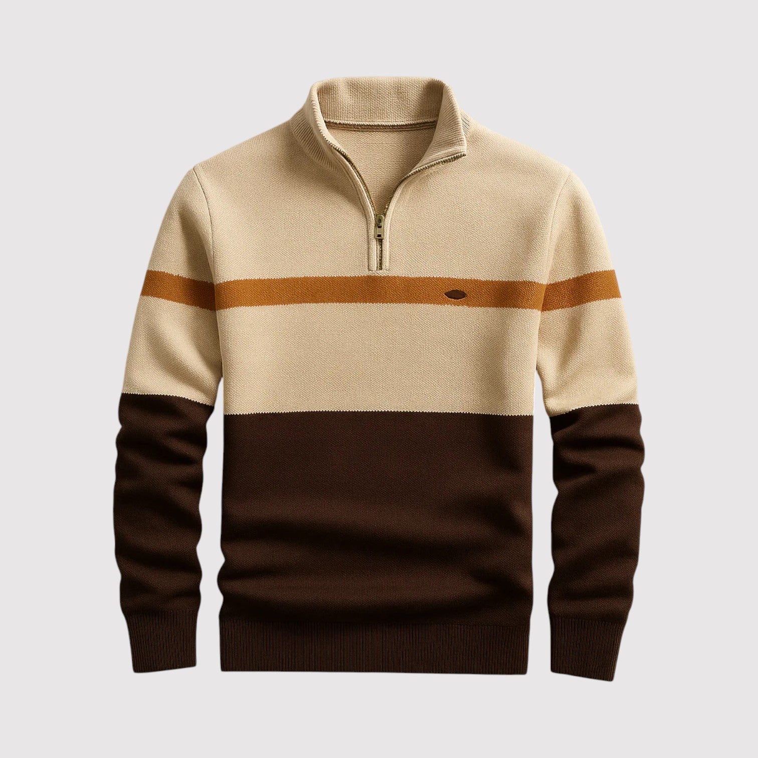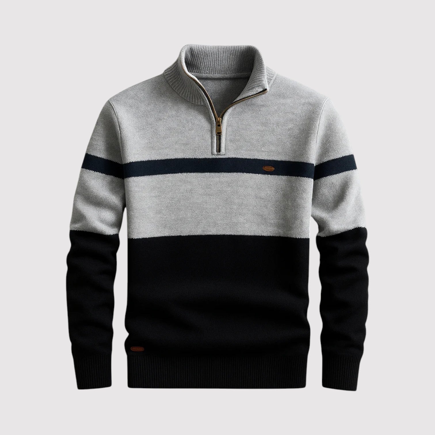 洗練された自信をまとう現代的なクォータージップセーター。上品さと快適さを大切にする大人の男性のためにデザインされました。オフィスでのレイヤードにも、週末のカジュアルスタイルにも自然に馴染み、落ち着いた存在感を演出します。