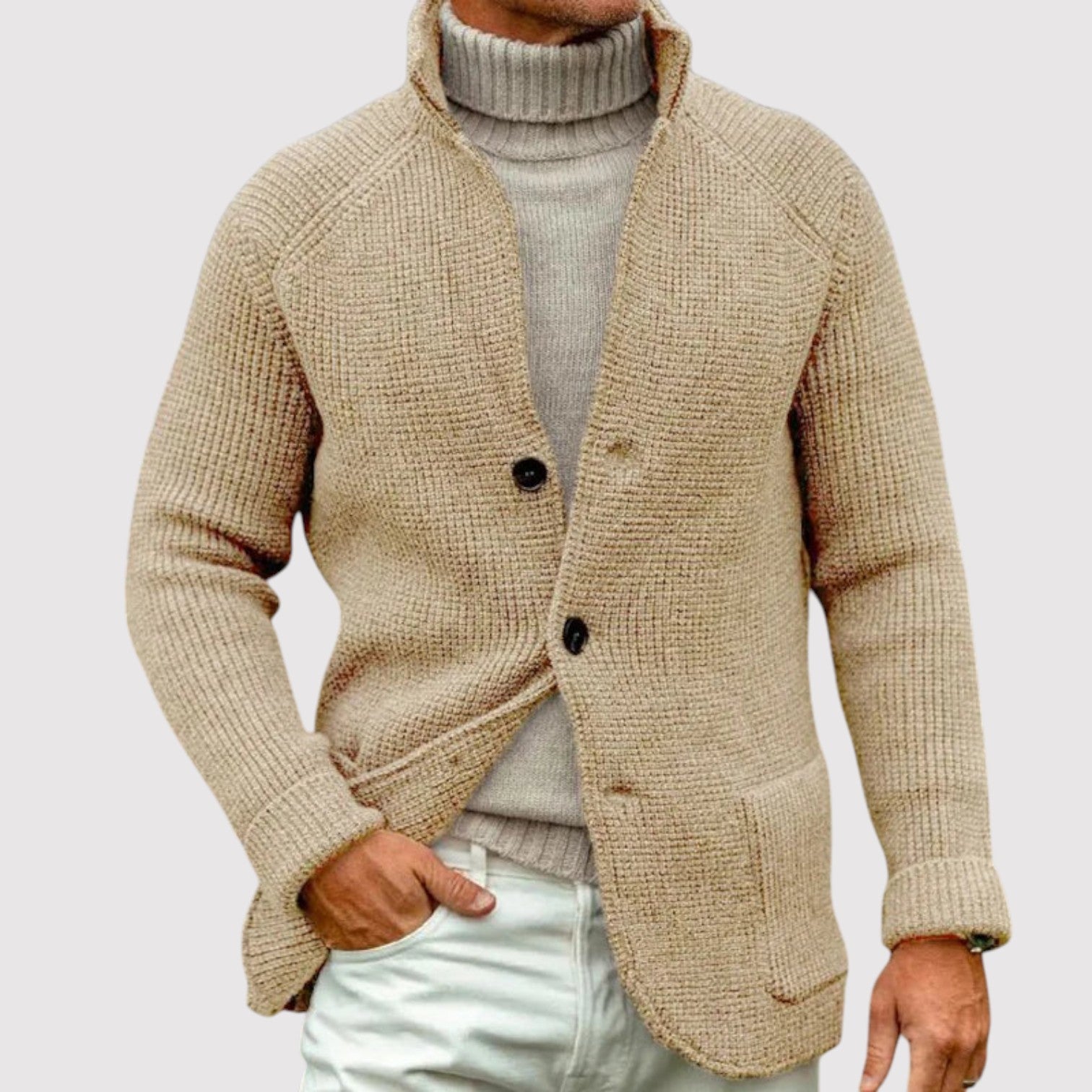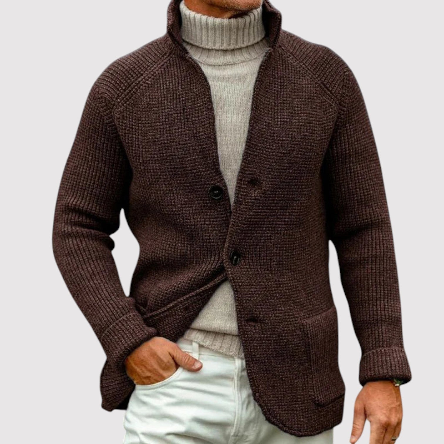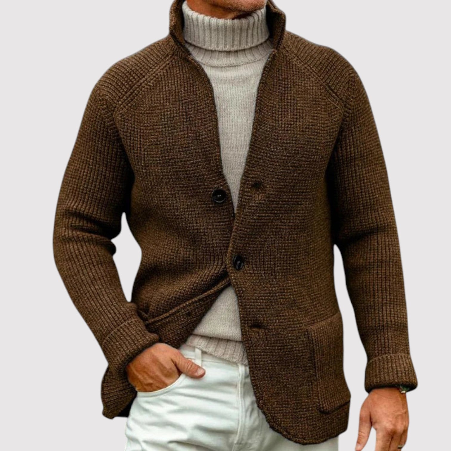 洗練された快適さを身にまとう贅沢なニットカーディガン。落ち着きと自信を漂わせる大人の男性にふさわしい一着です。上質な暖かさとタイムレスなデザインが、あなたの装いに静かな品格を添えます。