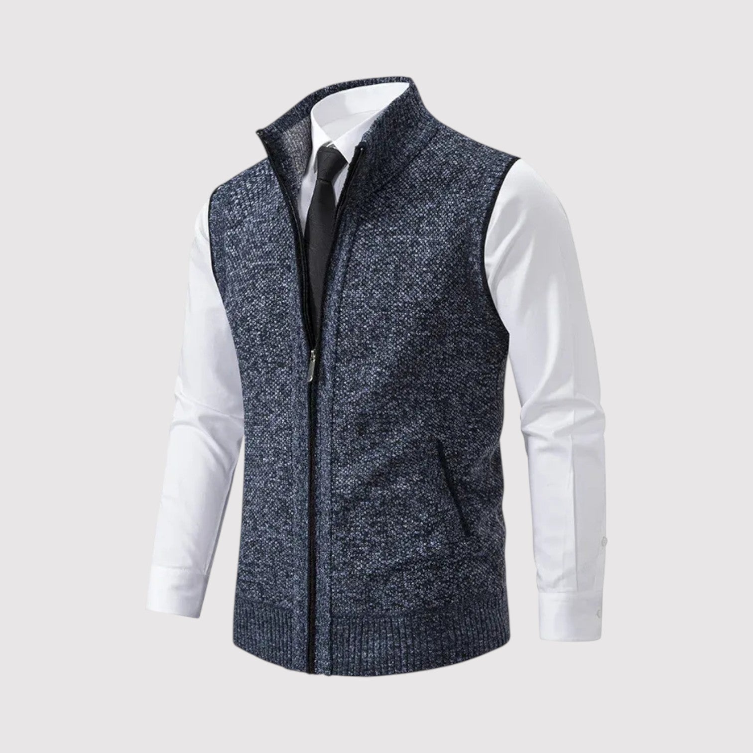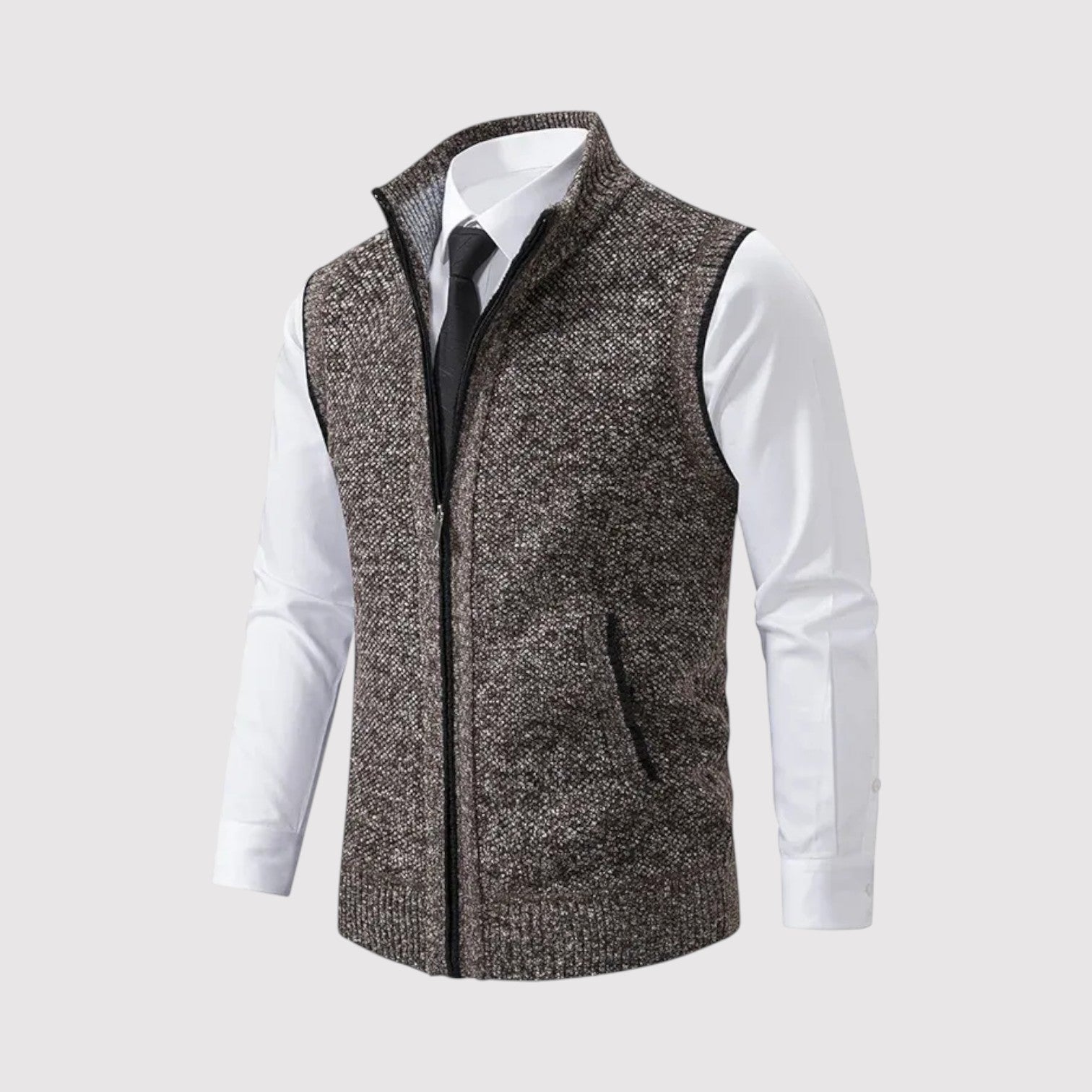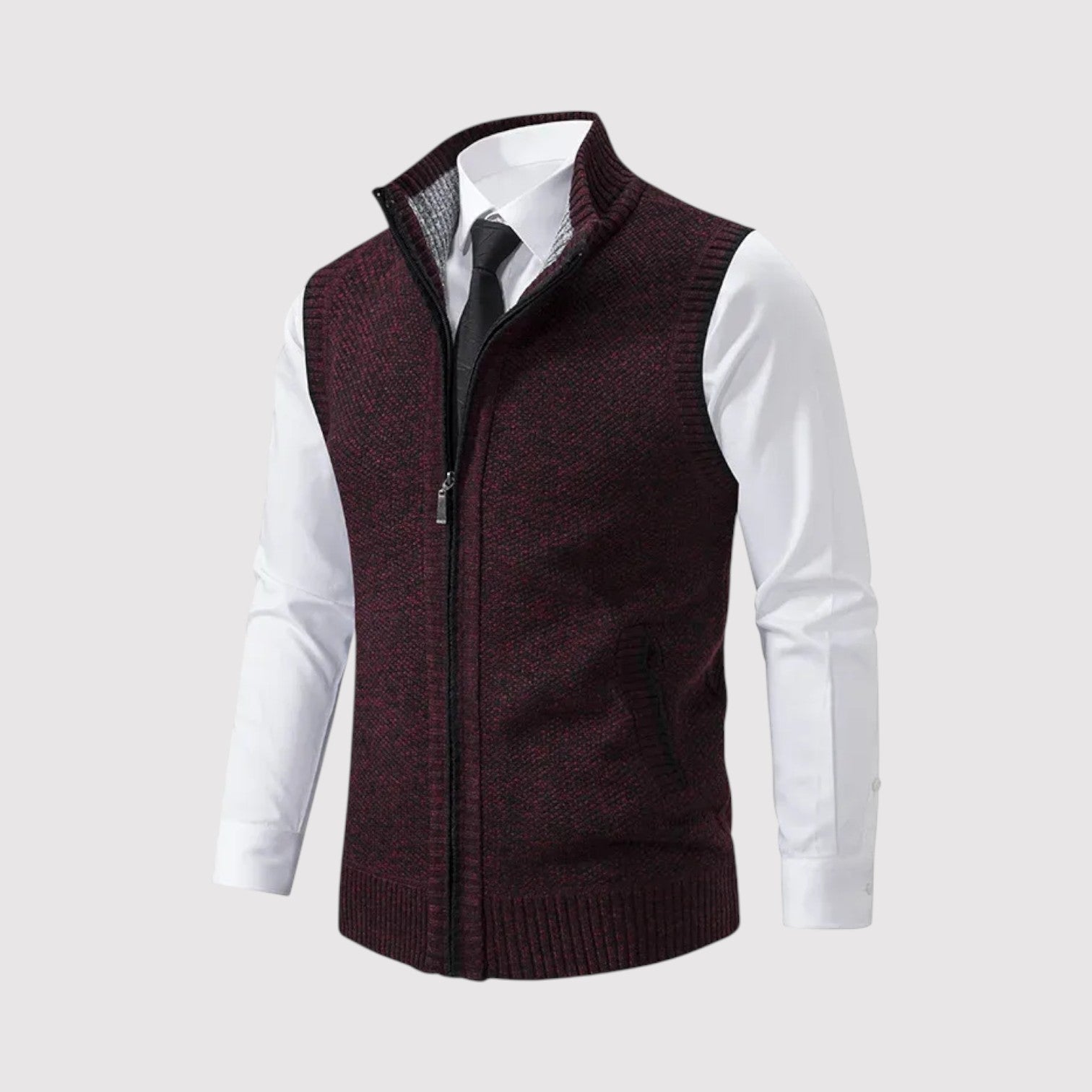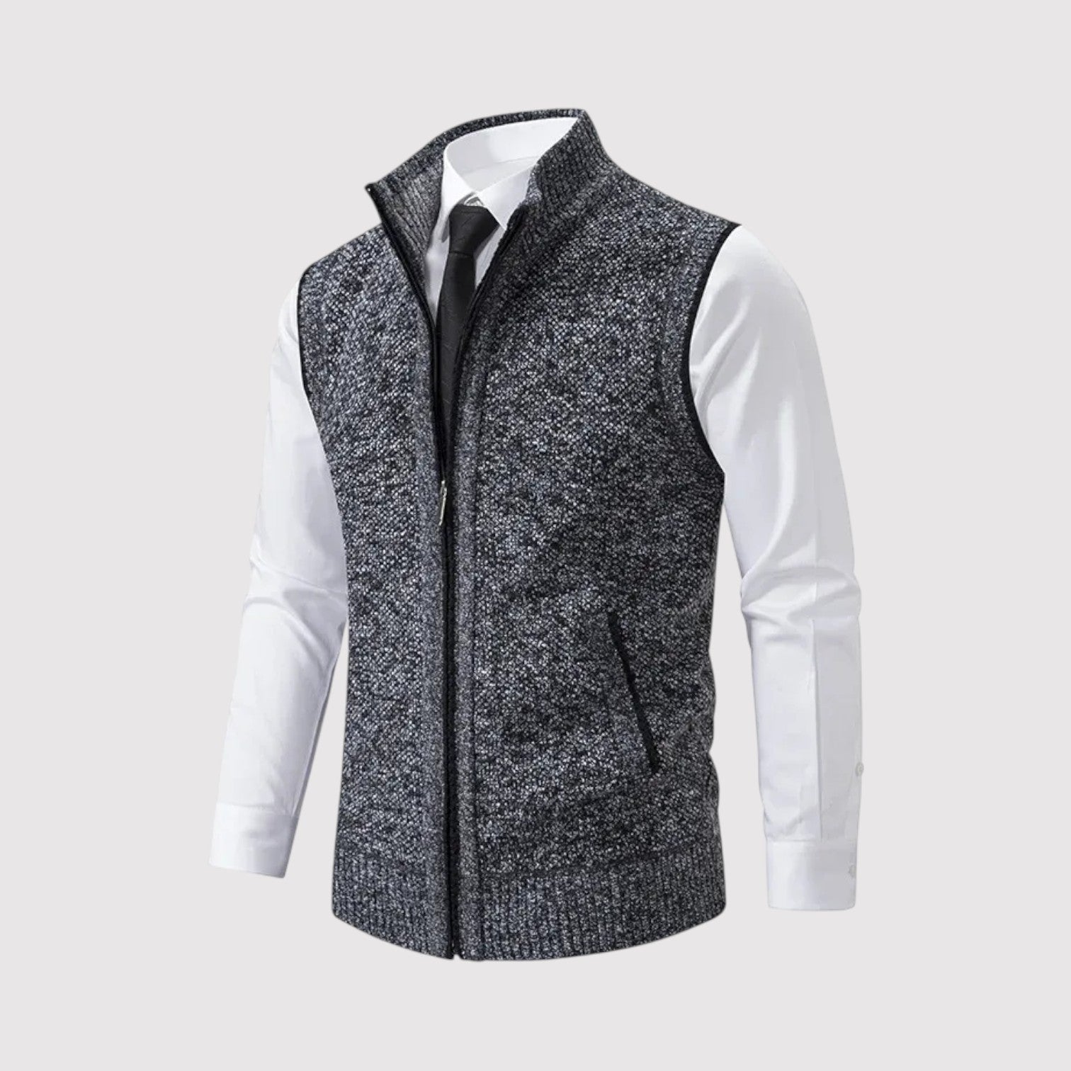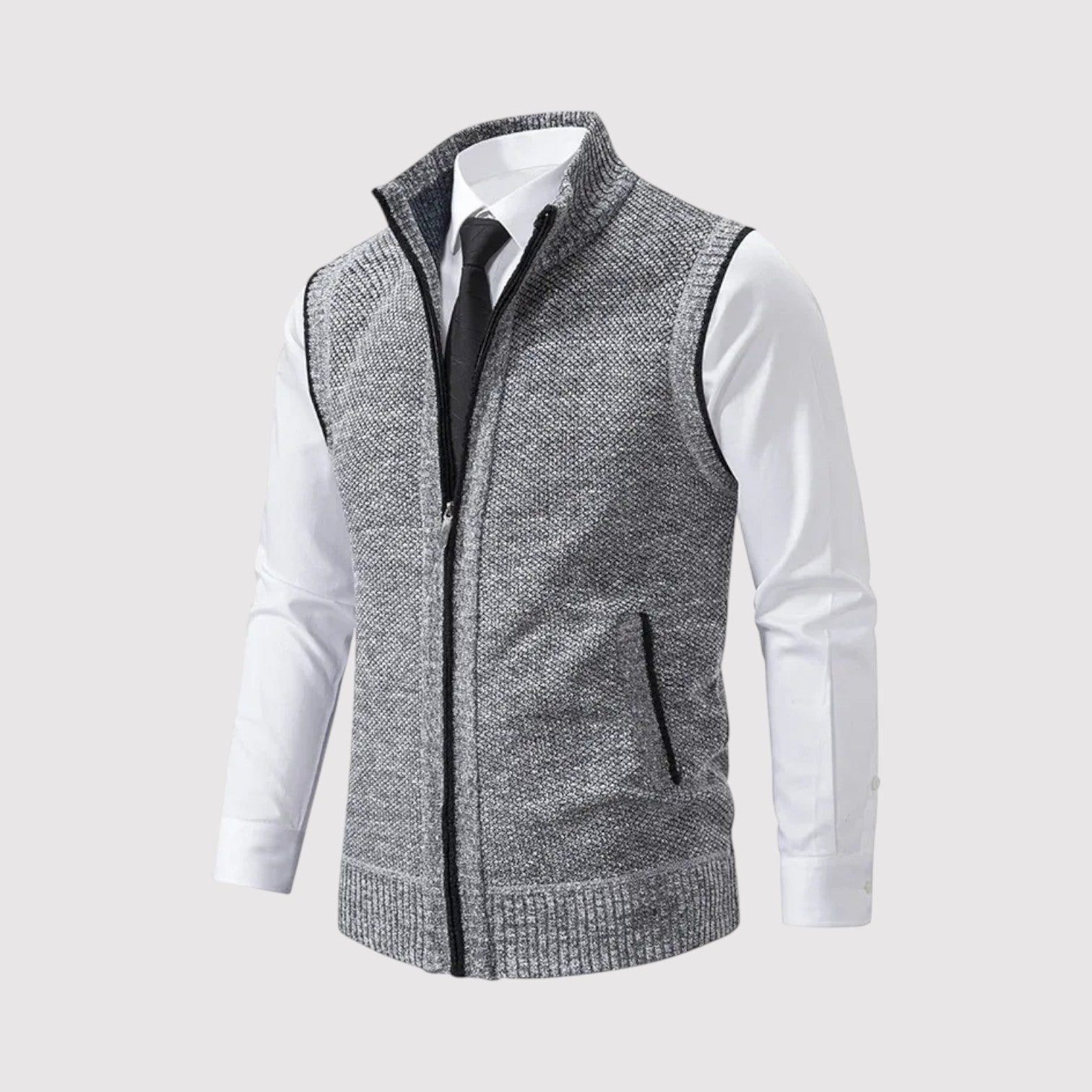 上品な自信を纏えるニットジップアップベスト。余計なボリュームを抑え、洗練された印象を与えながら心地よい暖かさを提供します。オフィスから週末まで自然に着こなせる一枚です。