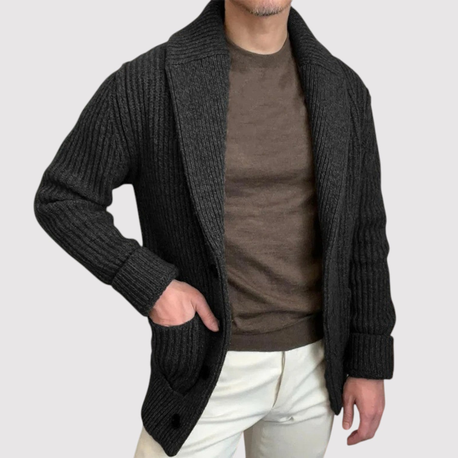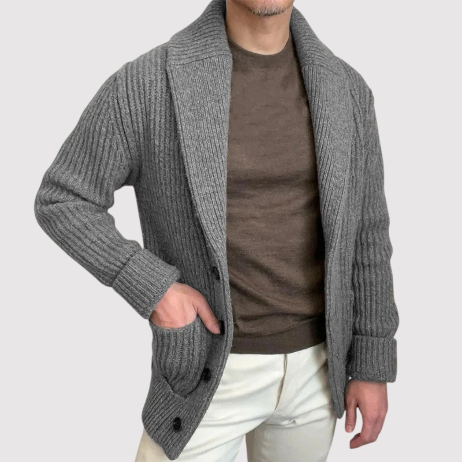 静かな自信を大切にする大人の男性のためにデザインされた、この快適で暖かいニットセーターは、タイムレスなスタイルと洗練された雰囲気を兼ね備えています。オフィスではシャツの上に重ねて、週末は一枚で — どんな場面でも上品で心地よい印象を与えます。