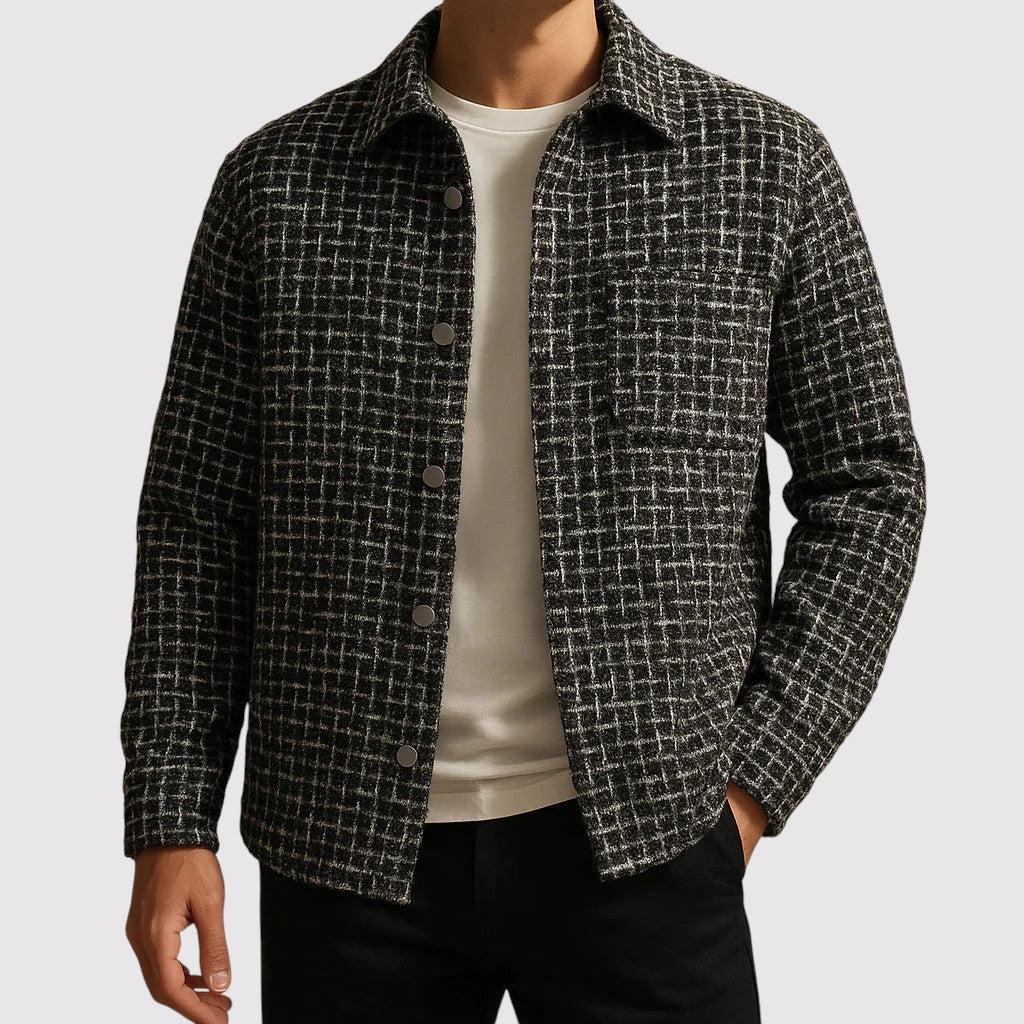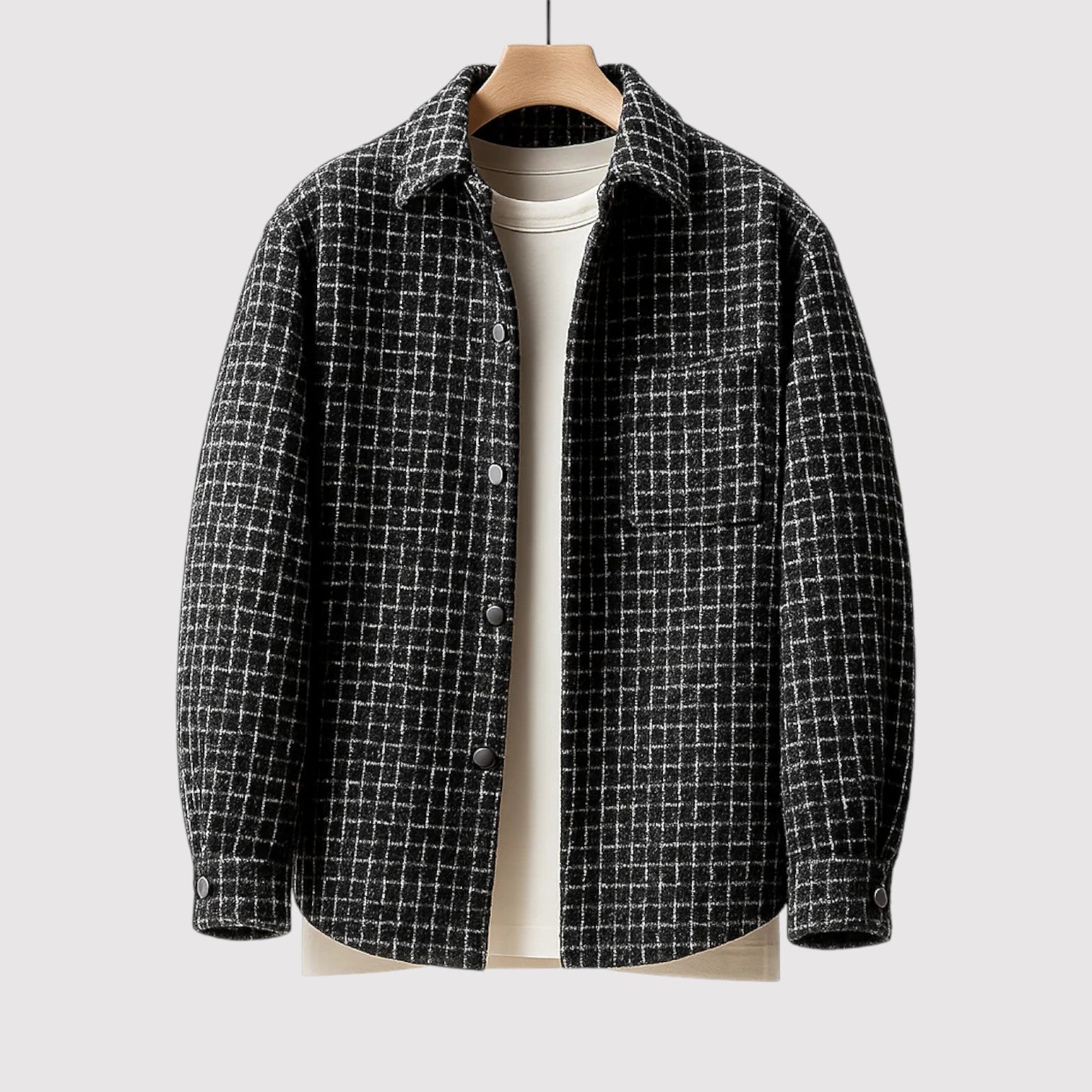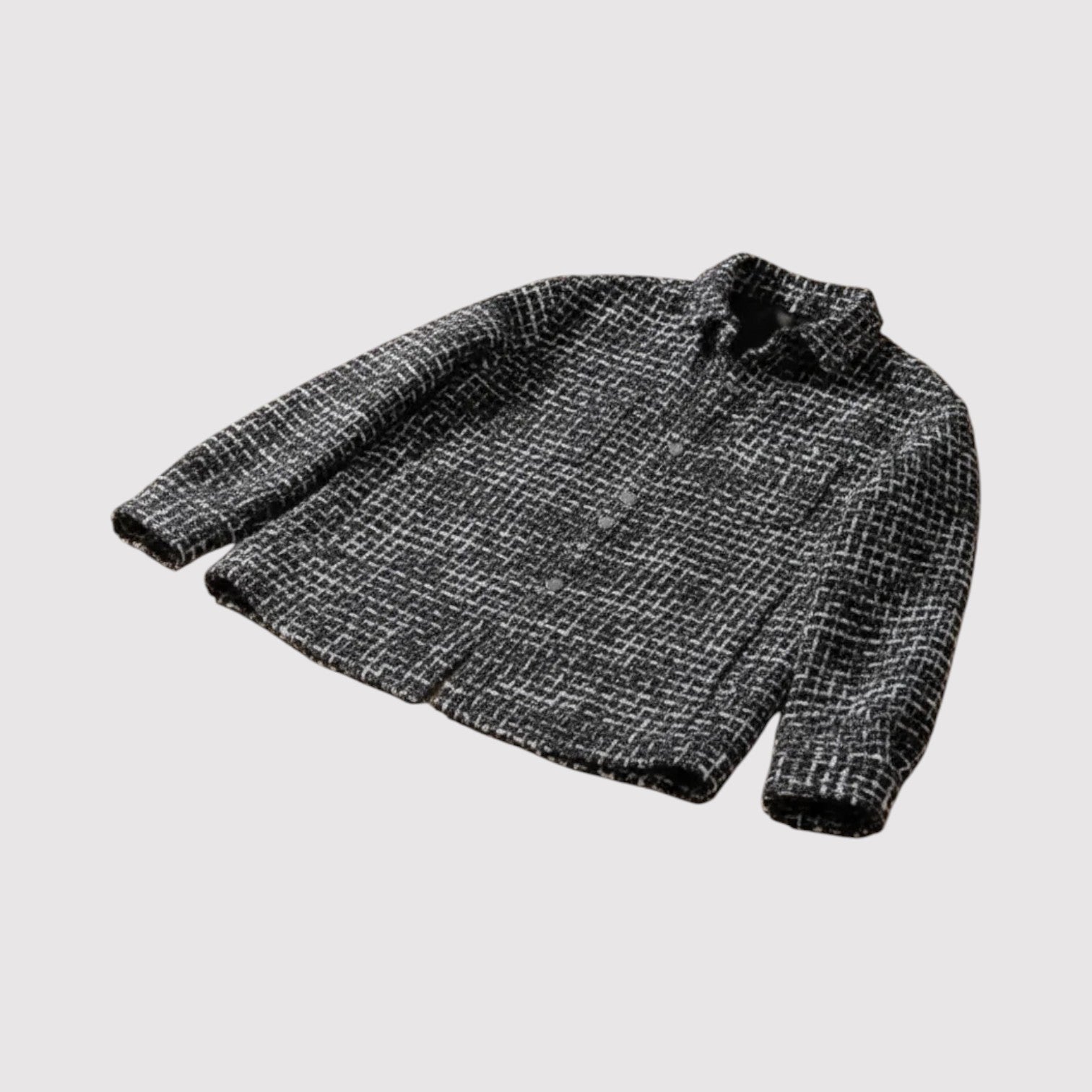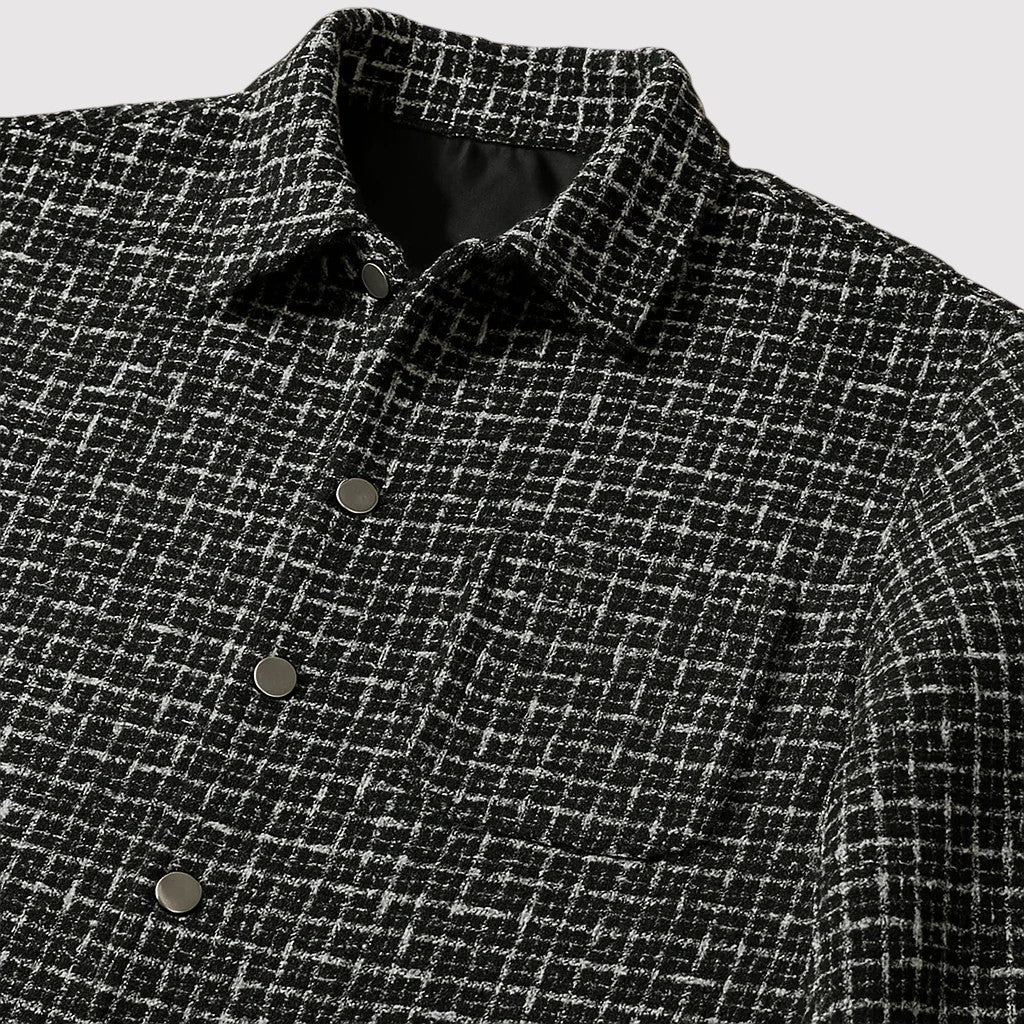 落ち着いた季節にそっと自信を添える一着――この高級ハウンドトゥース・シャケットは、重たさを感じさせずに、きちんとした印象と暖かさをもたらします。気負わずに“きちんと見える”大人のためのアイテムです。