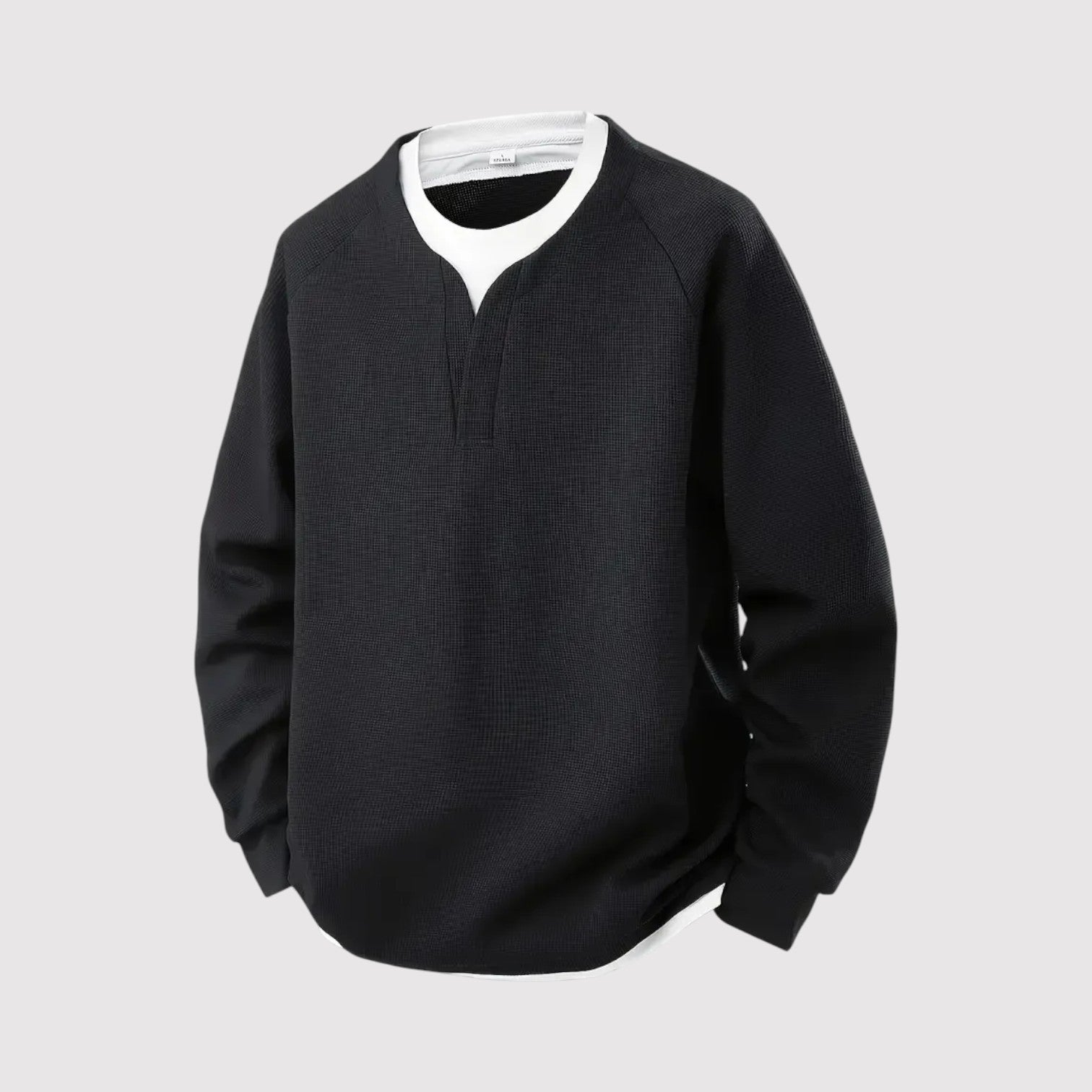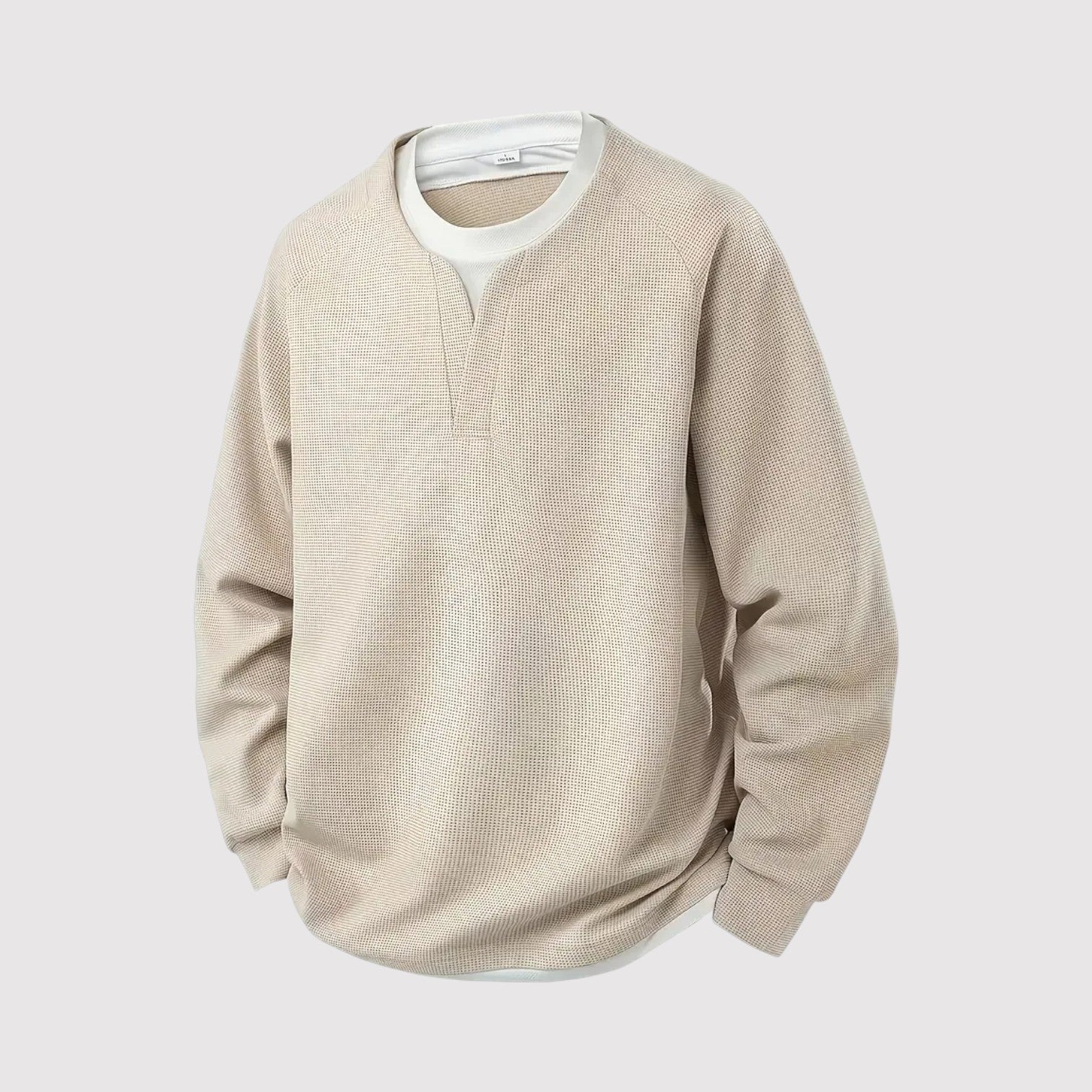 一日を静かな自信とともに始められる一枚——このプレミアム・レイヤード・ロングスリーブは、控えめでありながら洗練された印象を自然に引き立てます。