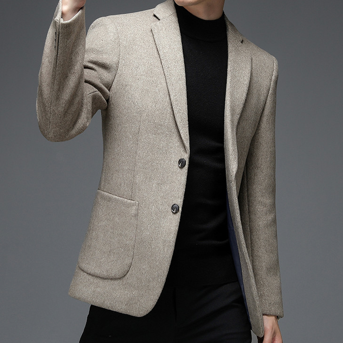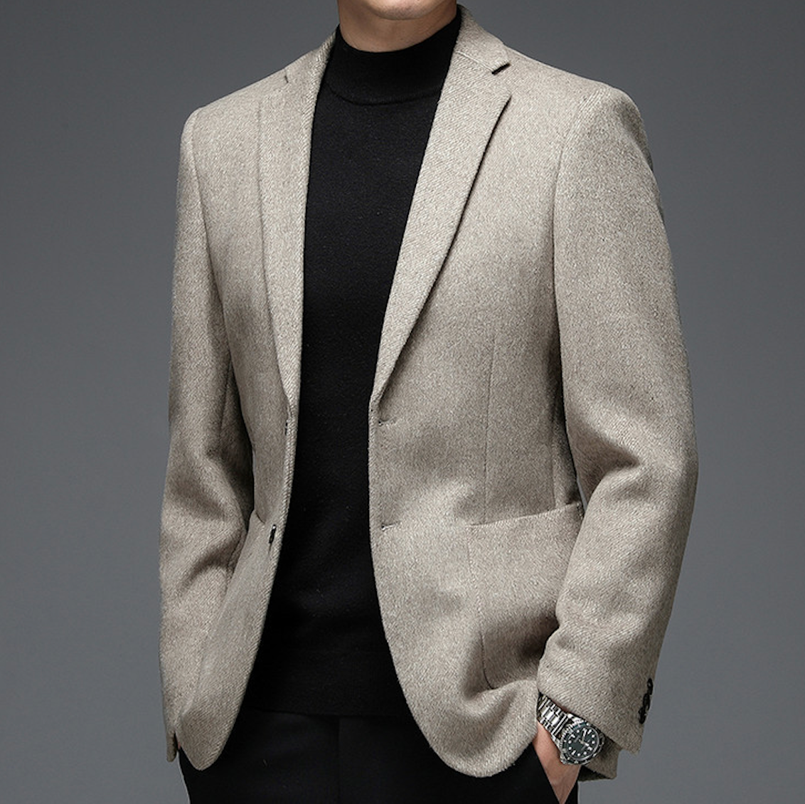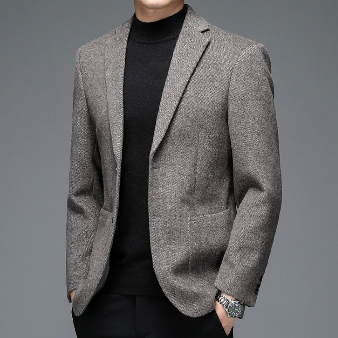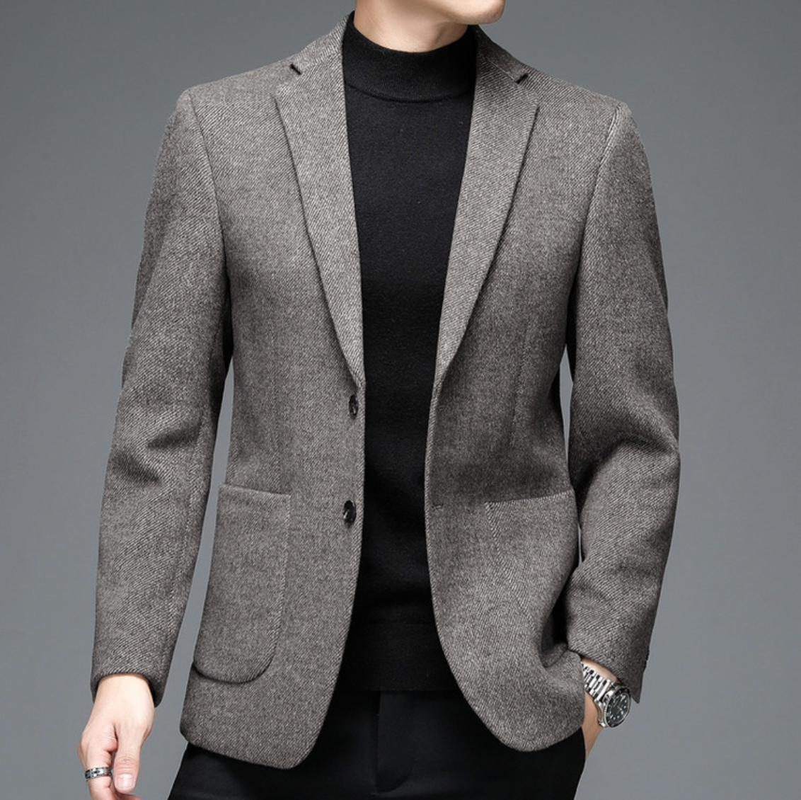 洗練さと耐久性を重視する男性のためにデザインされたこのブレザーは、軽さを保ちながら暖かく、上品なシルエットと長く続く着心地を実現し、オフィスからディナーまで活躍します。